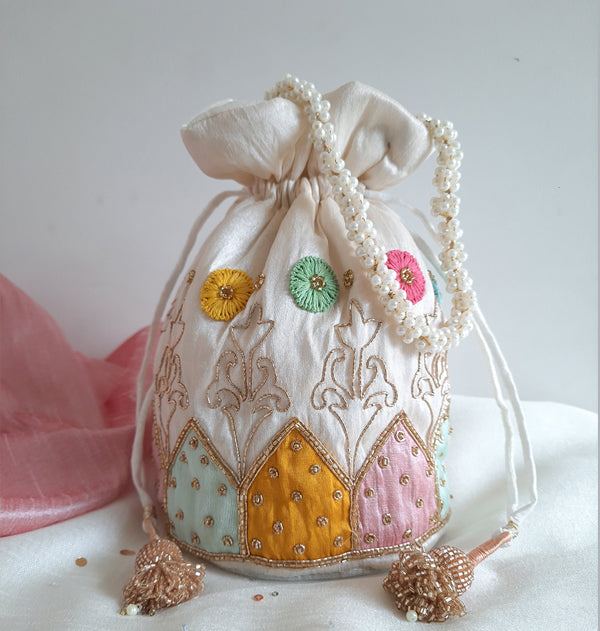 Feza was incorporated in 2017, with an aim to make these handcrafted accessories communicate with every individual, everyday, complimenting every look they wish to put on. We look forward to doing this by offering pure elegance with alluring sophistication for comfort and confidence. For us the customer comfort and needs is utmost. To meet these requirements of people from different regions around the world with varied choices was the greatest challenge, to curate what we call ‘universally loved’ was our greatest challenge and will always be. We aim at showcasing ethnic Indian embroideries and art in a way that looks like an amalgamation of western as well as Indianised form. At times, this balance and appeal can be a great challenge to accomplish perfectly for which our team works day in and out. Every piece is hand crafted with precision by skilled craftsmen so you can proudly say that your bag was specially customised for you. The hours of hard work they put into creating that one piece of perfection is what we promote. With a blend of gotta, zari, cut dana, beads, and other embellishments, these evening clutches can instantly glamorise any outfit.